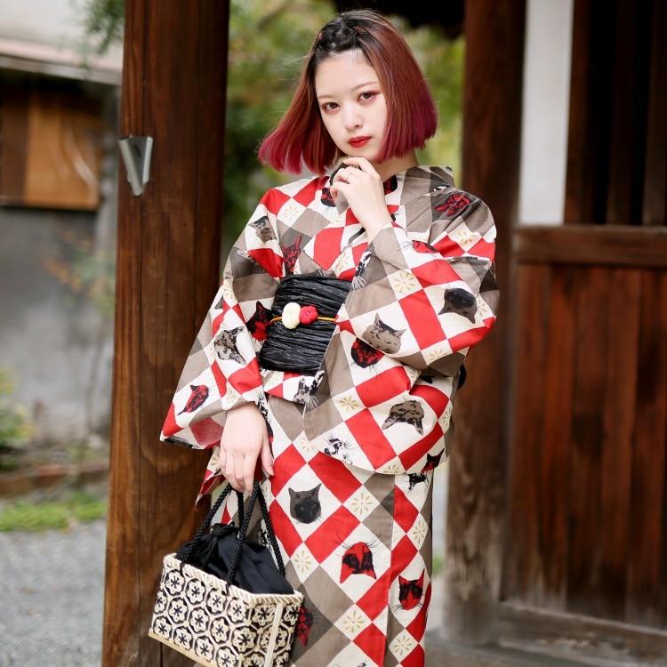 浴衣セットレディースゆかた帯下駄大正ロマンレトロ古典猫赤生成り鞠 Nicoantiqueoriginal ニコアンティークオリジナル 市松レトロに遊ぶ ネコred ゆかた 帯 下駄のセットです 09 24 31 105 5 9より順次出荷 画像あり 浴衣 日本の着物 浴衣 レトロ