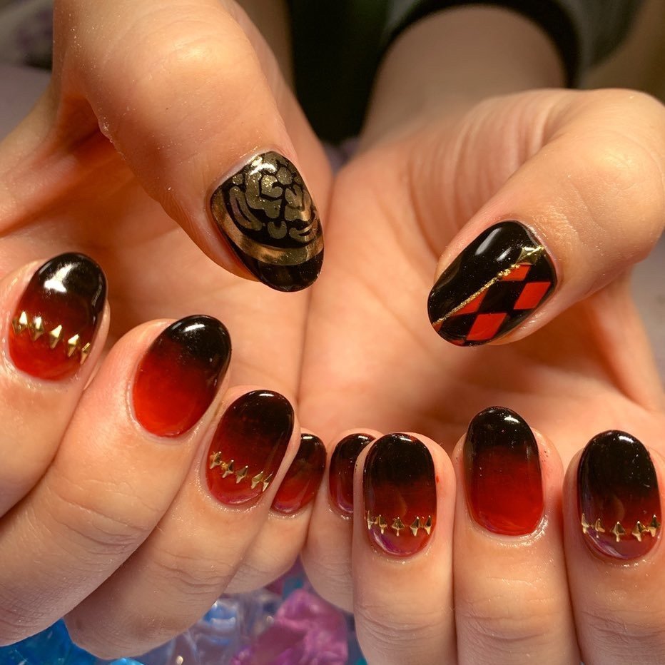 大晦日に載せたけど 単品で 花丸楽しみー 安定しくったすまん 痛ネイル セルフネイル ジェルネイル グラデーションネイル 刀剣乱舞ネイル 加州清光 大和守安定 刀剣乱舞 刀剣乱舞花丸 痛ネイル 刀剣乱舞 ネイル ネイルのアイデア