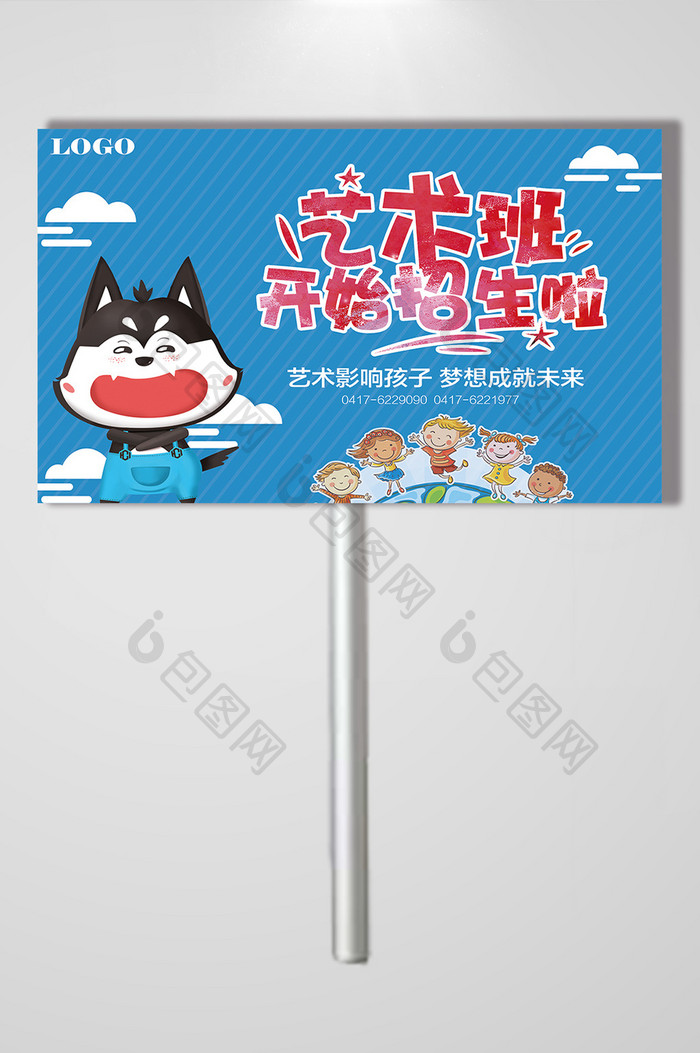 简约卡通ip艺术班招生手举牌 图片下载 包图网