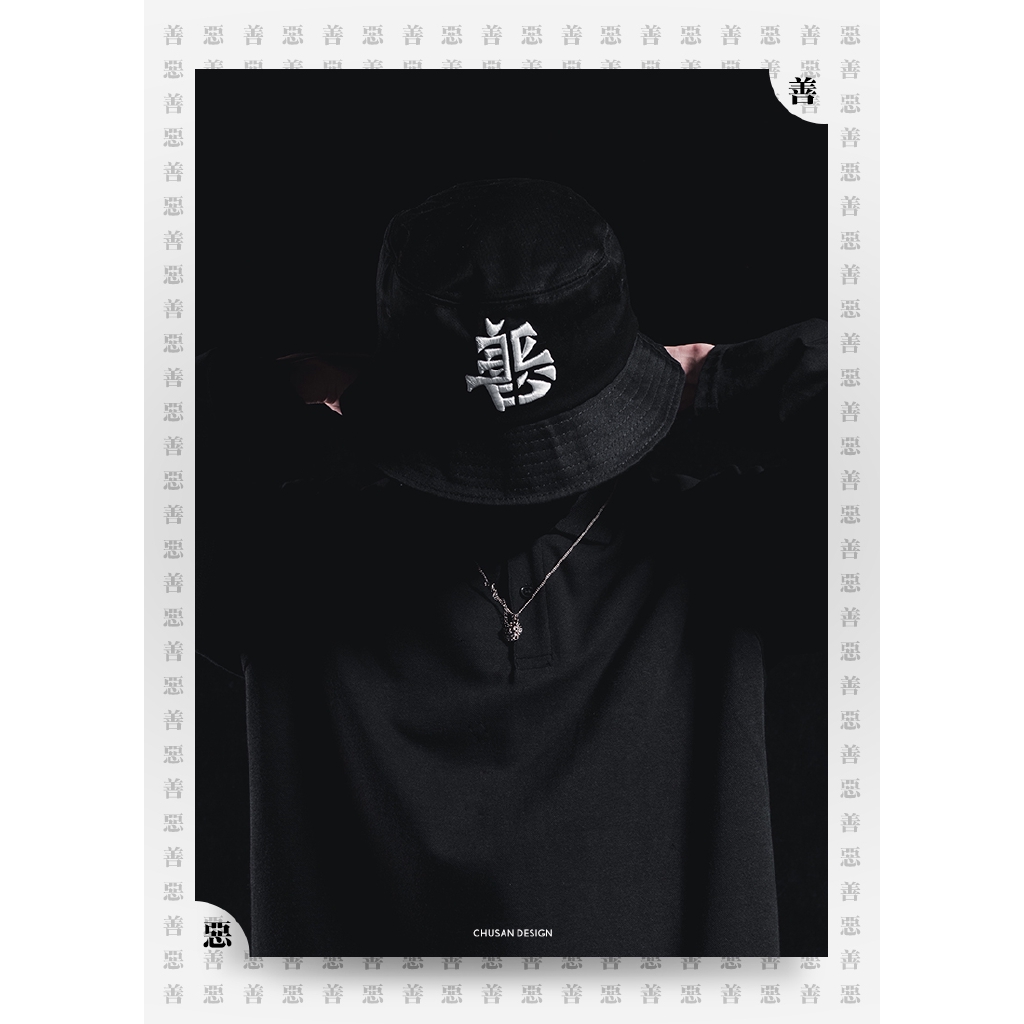 Draconite初弎联名中国风汉字善恶潮牌渔夫帽男女斜纹布帽子16027 阿里巴巴找货神器