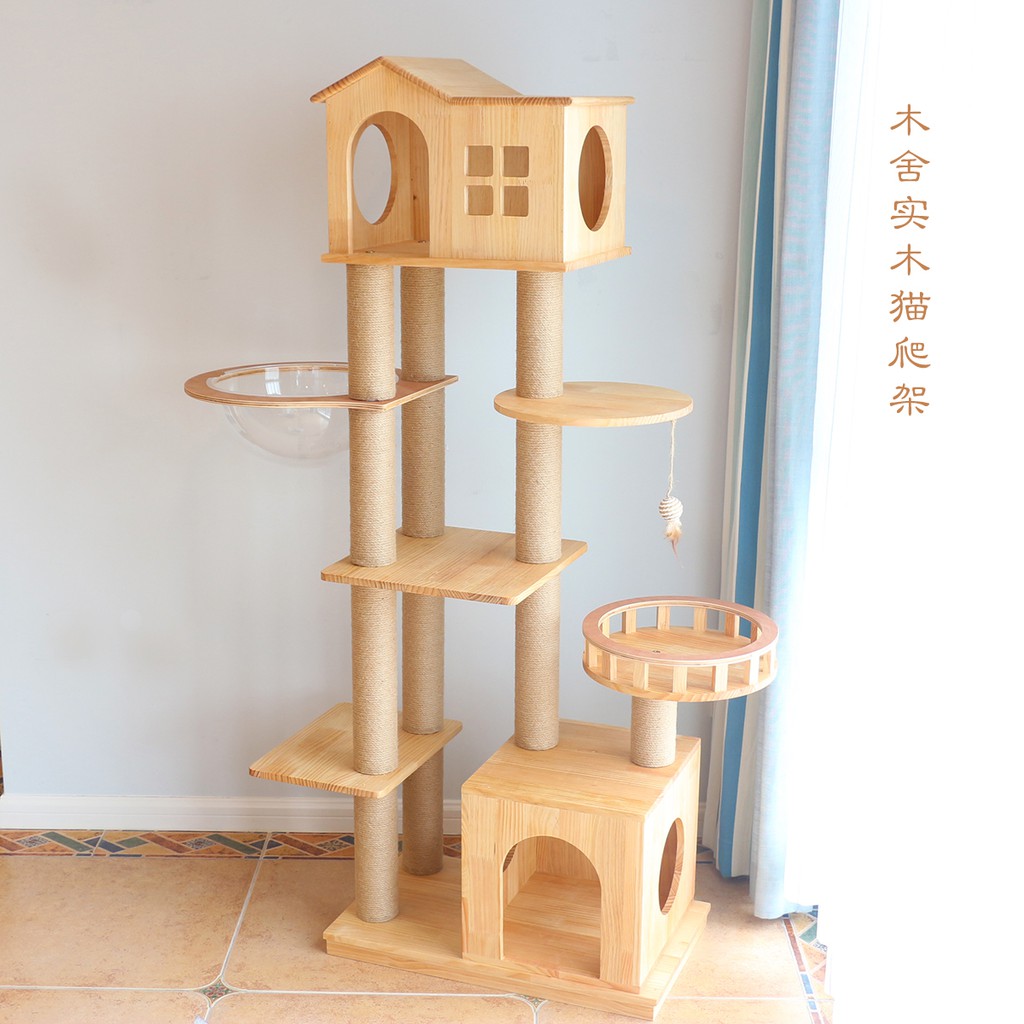 衣知純 貓爬架貓跳台貓抓板木舍實木貓爬架貓別墅太空艙豪華夏季貓窩貓樹大型多貓用跳臺別墅