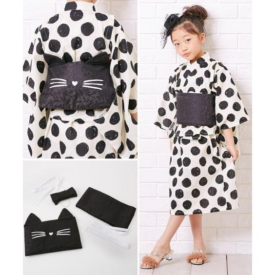 浴衣 キッズ ネコちゃん帯 ワンピース 上下 ネコ帯 女の子 子供服 ジュニア服 身長110 160cm ニッセン ニッセン Paypayモール店 通販 Paypayモール