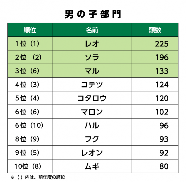 ペットの名前ランキング2019 ペット保険ならアイペット損保 数々のno 1受賞