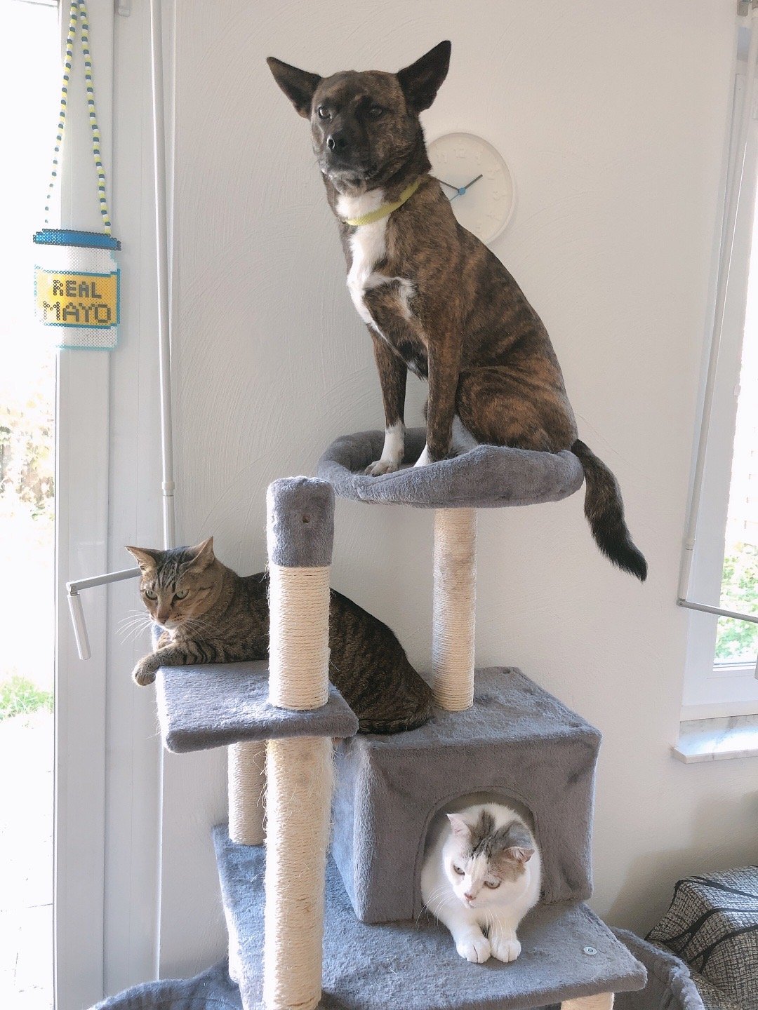 两只妖怪都在猫塔上玩 Brandon为了自己闺女能融入集体