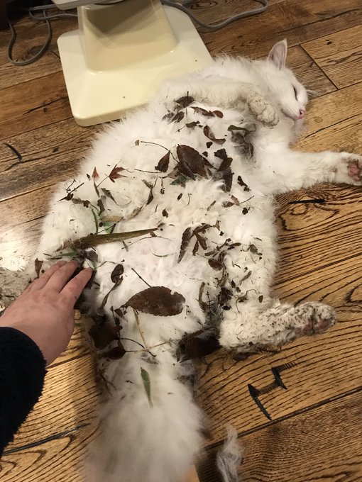 元気に遊んできたのね ご満悦で帰宅した長毛種のねこちゃんと その姿を見て悲鳴をあげる飼い主さん Togetter