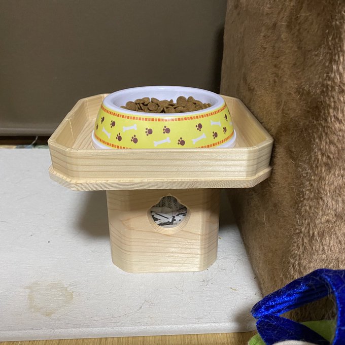 ご飯を15cmくらいの高さに置くと猫の吐く頻度が減ると聞き ホームセンターで高さのある台を探したらお供えになった Togetter