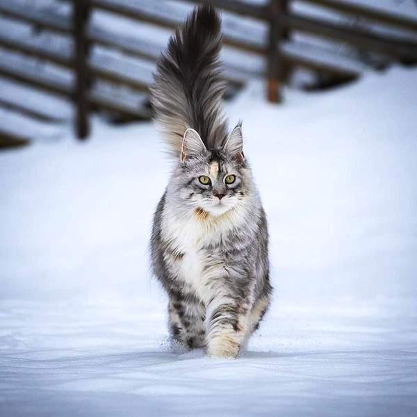 超霸氣 雪地裡的緬因貓 彷彿在雪中的小獅子帥到不行