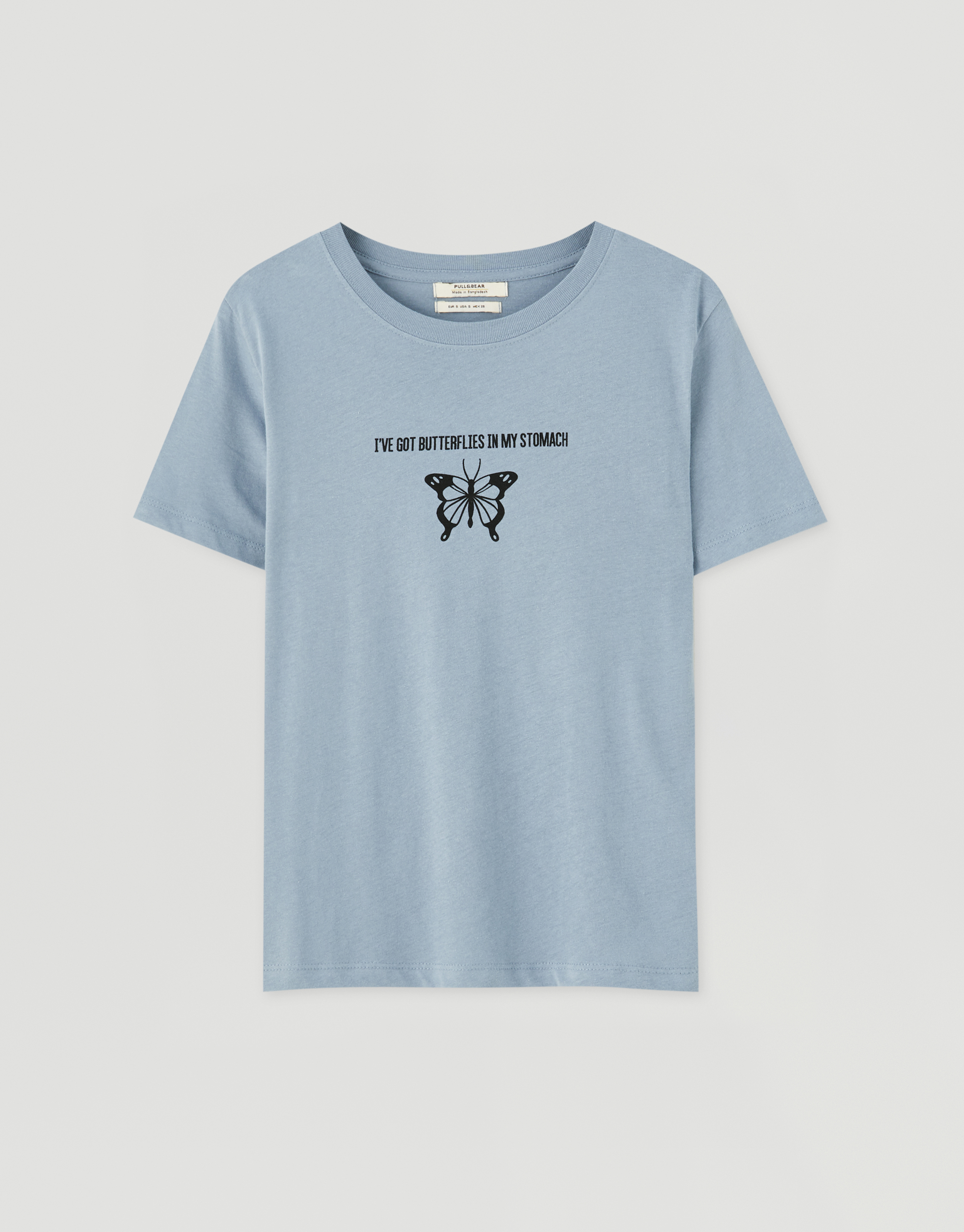 Blue T Shirt With Butterfly Illustration Pull Bear
