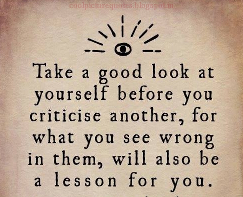 Take A Good Look At Yourself Before You Criticize Another For What You See Wrong In Them Will Also Be A Lesson For You Cool Picture Quotes